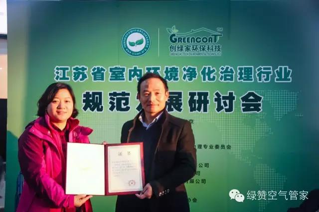 最后,凈化委向創綠家環??萍碱C發了“蓓蕾健康空氣行動”江蘇省執行單位證書。