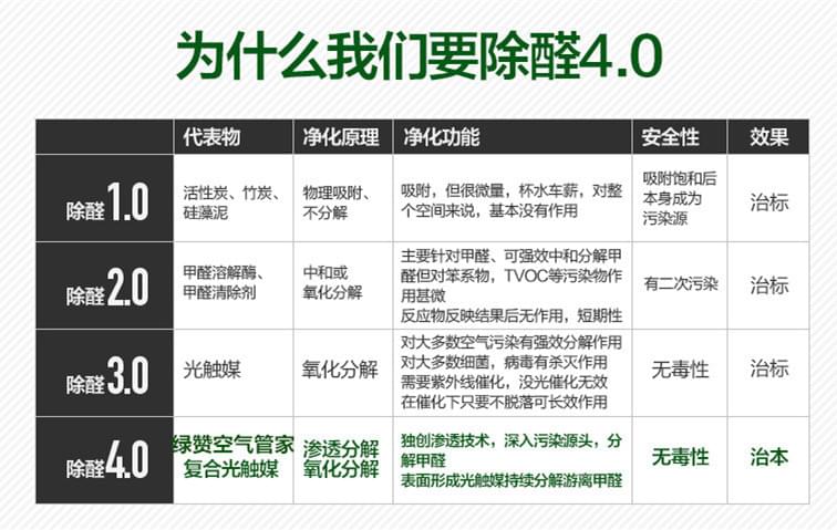 創(chuàng)綠家環(huán)保科技有限公司開創(chuàng)了全屋空氣環(huán)境治理4.0的新時代!!“綠贊空氣管家”采用復(fù)合納米光觸媒滲透技術(shù),分類除醛,直擊源頭!一次除醛!長期有效!